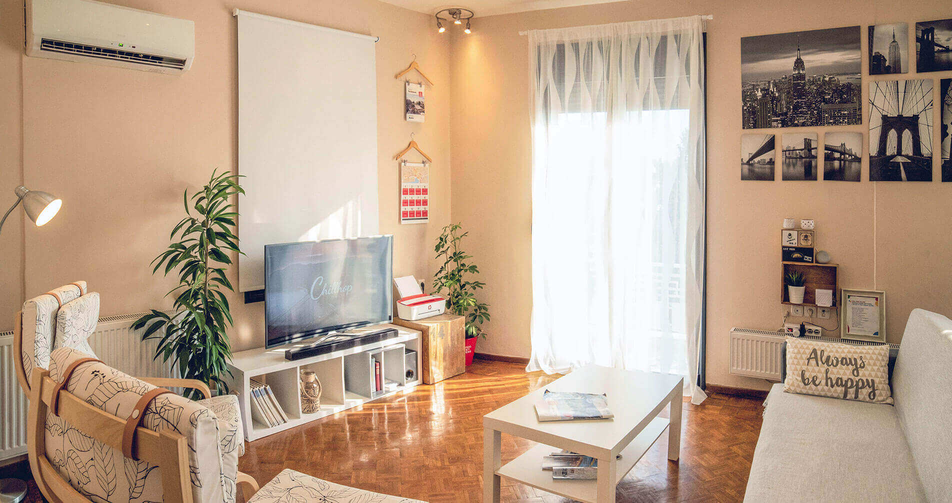 To the left is the modern kitchen with central island, leading through to the unique breakfast family room which feature glass walls and doors out onto the garden and access to the separate utility room.